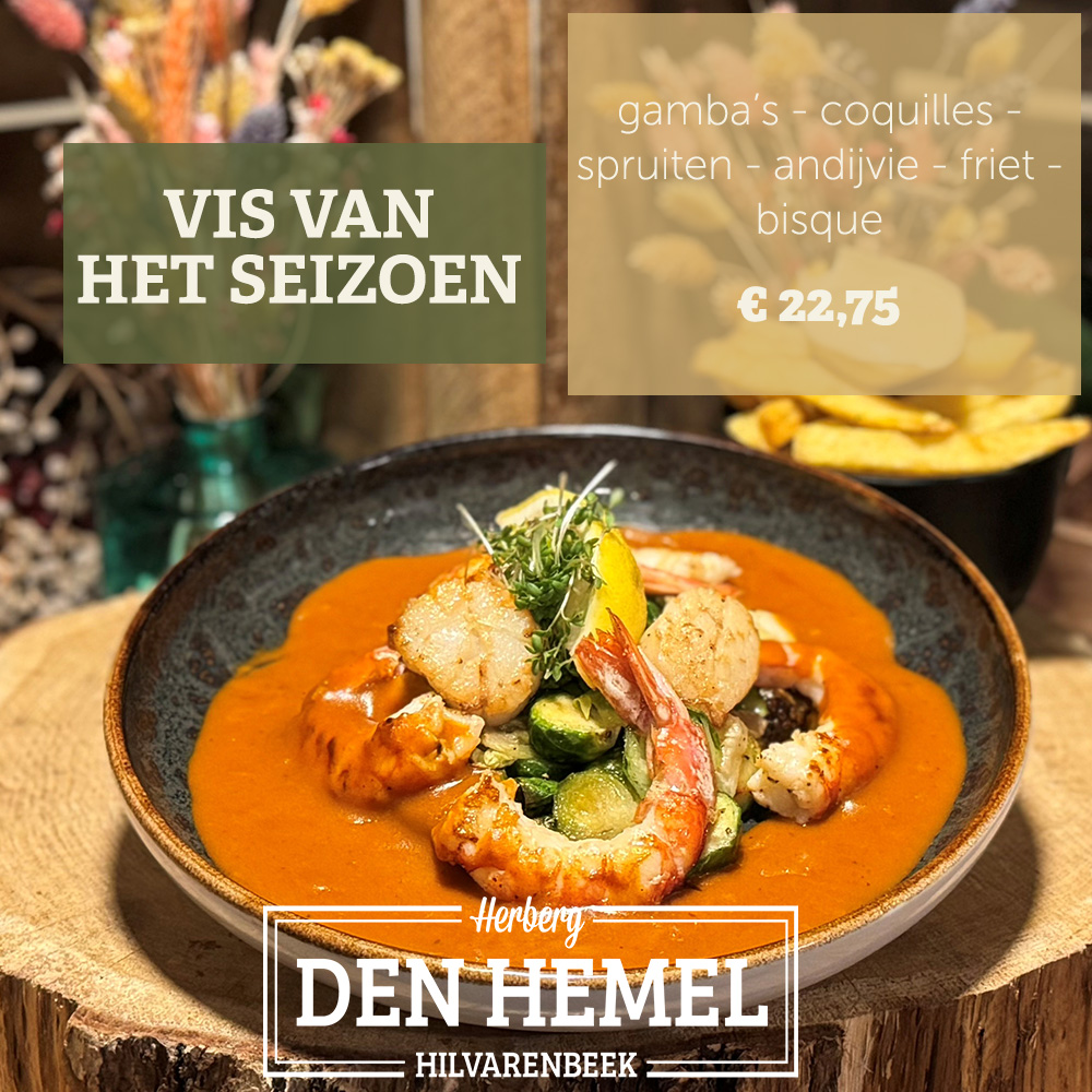 Buiten onze menukaart, hebben we ook seizoensgebonden gerechten welke we u graag aan tafel vertellen.