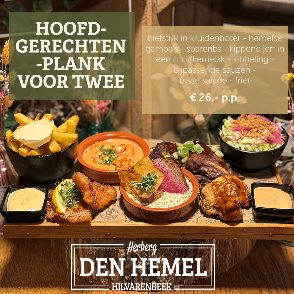 Benieuwd naar de gerechten? Hieronder in de galerij ziet u een greep uit onze menukaart. Reserveer via info@herbergdenhemel.nl.