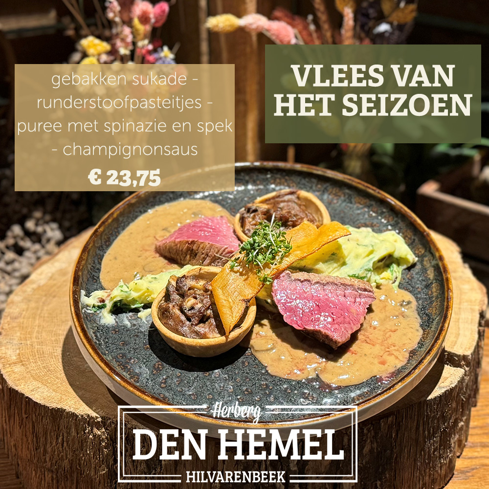Buiten onze menukaart, hebben we ook seizoensgebonden gerechten welke we u graag aan tafel vertellen.