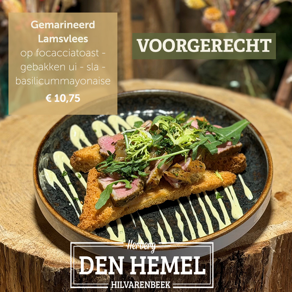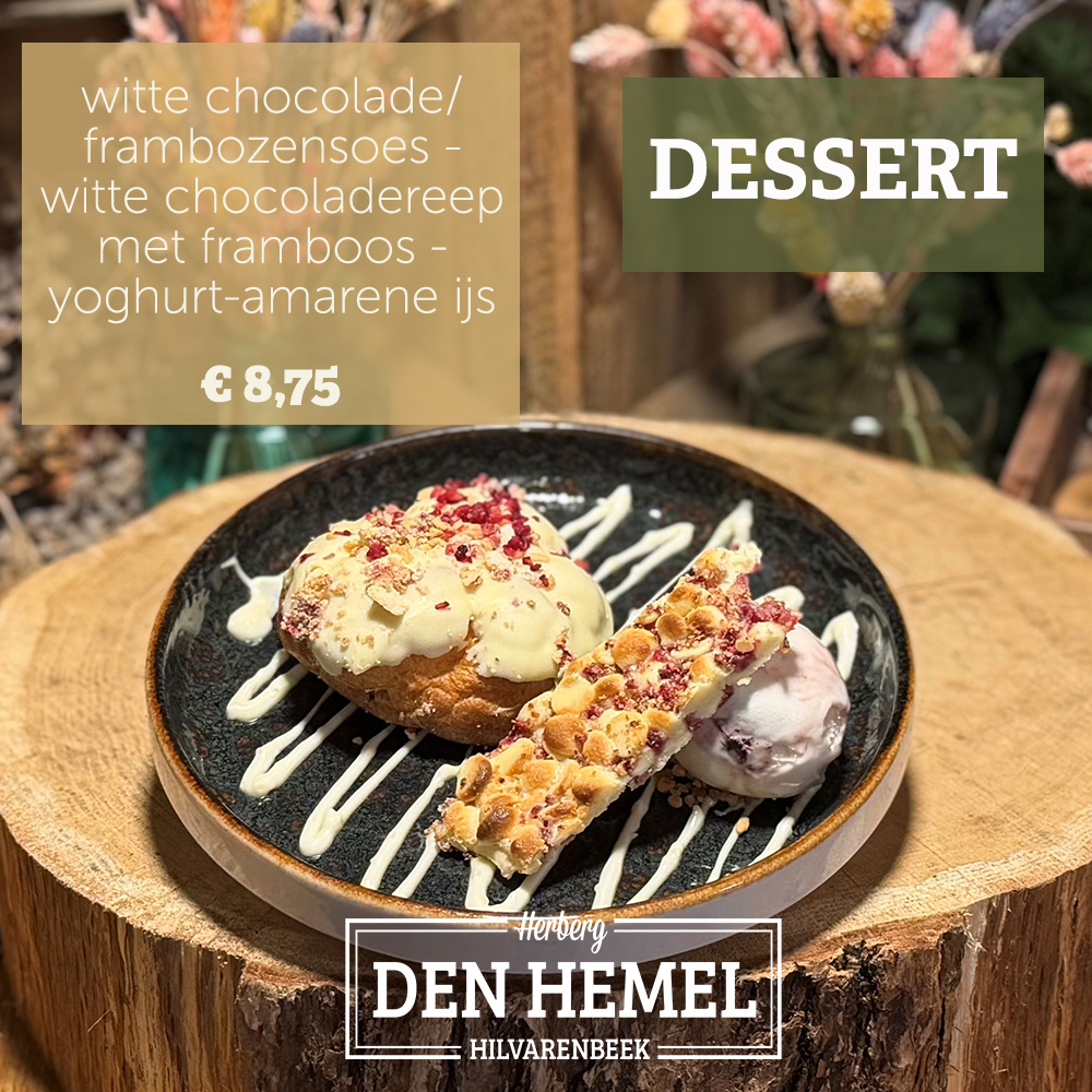 Benieuwd naar de gerechten? Hieronder in de galerij ziet u een greep uit onze menukaart. Reserveer via info@herbergdenhemel.nl.