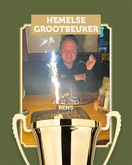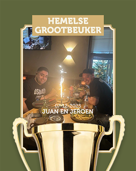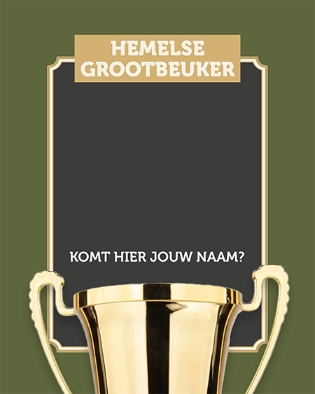 De Hemelse Beuker – van maar liefst 1150 gram – test je grenzen én je broekband! Wie hem solo verslaat, verdient eeuwige roem en wordt onsterfelijk op onze Hemelse Wall-Of-Fame als ‘De Grootbeuker’.